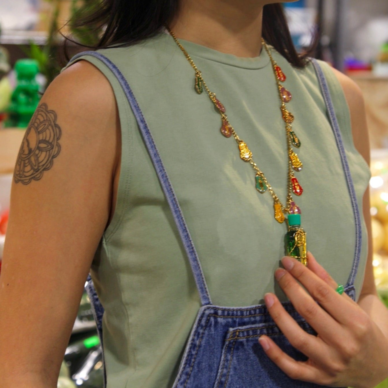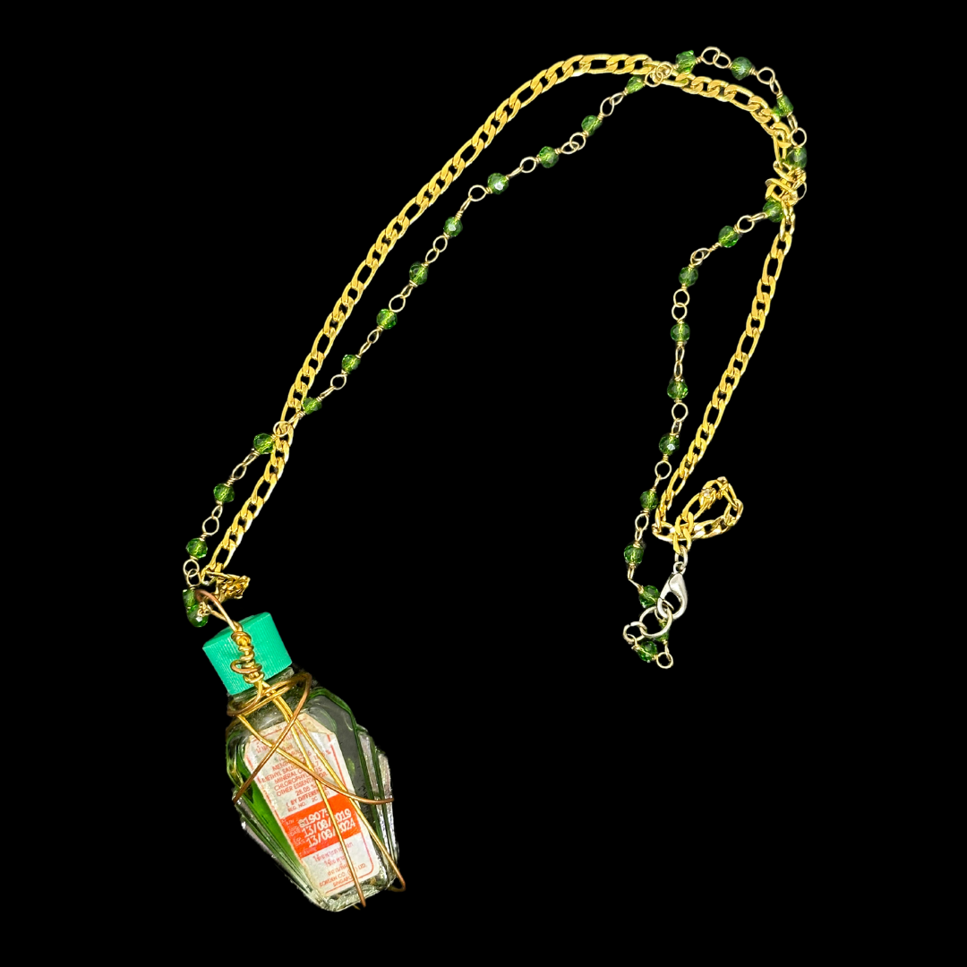 the gold and silver wire used to wrap the pendants may discolor over time without proper care: