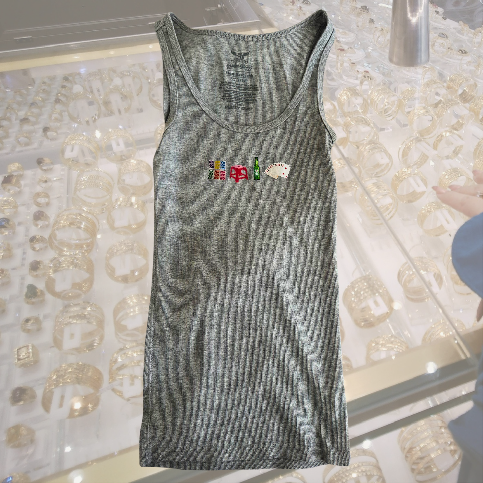 - all tanks are second hand so all will be 1 of 1's in terms of material and brand. this means not every tee will look exactly like the pictures, it will be the closest in tank color that you selected. design remains the same.